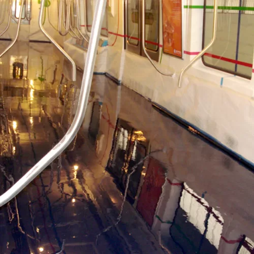 Realizamos a impermeabilização das superfícies do metrô São Paulo-Rio com o uso de Poliuretano (PU), uma matéria-prima que garante um ambiente de fácil limpeza, que não acumula sujeiras e nem bactérias.